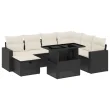 vidaXL Vrtna sedežna garnitura 8-delna z blazinami črn poli ratan