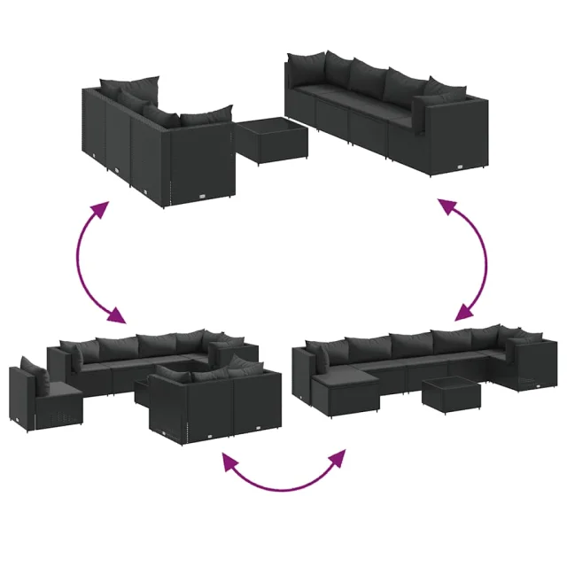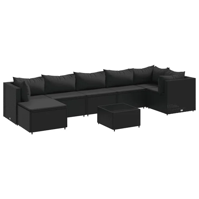 vidaXL Vrtna sedežna garnitura 8-delna z blazinami črn poli ratan