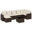vidaXL Vrtna sedežna garnitura 8-delna z blazinami rjav poli ratan