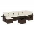 vidaXL Vrtna sedežna garnitura 8-delna z blazinami rjav poli ratan