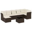 vidaXL Vrtna sedežna garnitura 8-delna z blazinami rjav poli ratan