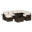vidaXL Vrtna sedežna garnitura 8-delna z blazinami rjav poli ratan