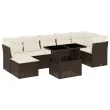 vidaXL Vrtna sedežna garnitura 8-delna z blazinami rjav poli ratan