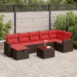 vidaXL Vrtna sedežna garnitura 8-delna z blazinami rjav poli ratan