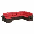 vidaXL Vrtna sedežna garnitura 8-delna z blazinami rjav poli ratan