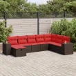 vidaXL Vrtna sedežna garnitura 8-delna z blazinami rjav poli ratan