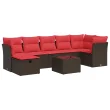 vidaXL Vrtna sedežna garnitura 8-delna z blazinami rjav poli ratan