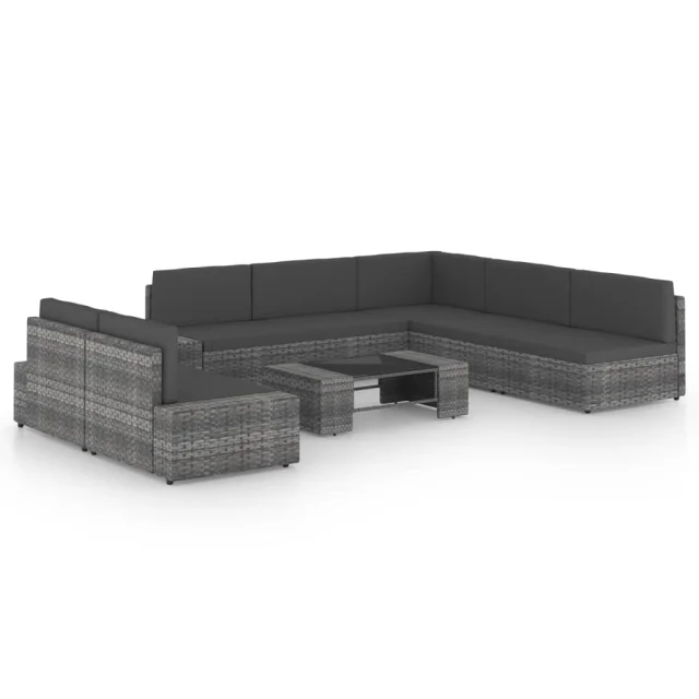 vidaXL Vrtna sedežna garnitura 8-delna z blazinami siv poli ratan