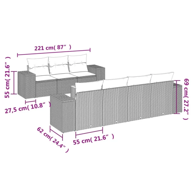 vidaXL Vrtna sedežna garnitura 8-delna z blazinami siv poli ratan