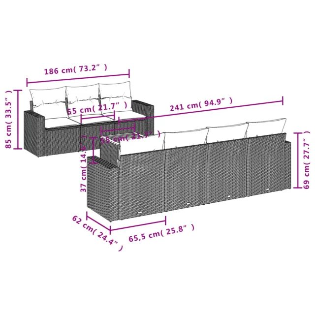 Ta vrtna sedežna garnitura je popoln dodatek za vaše dvorišče, teraso ali verando, saj zagotavlja udoben in vabljiv prostor za klepet z družino in prijatelji ali preprosto za sprostitev in uživanje na prostem.