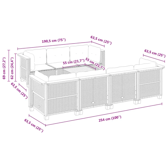 Ta vrtna sedežna garnitura je popoln dodatek za vaše dvorišče, teraso ali verando, saj zagotavlja udoben in vabljiv prostor za klepet z družino in prijatelji ali preprosto za sprostitev in uživanje na prostem.