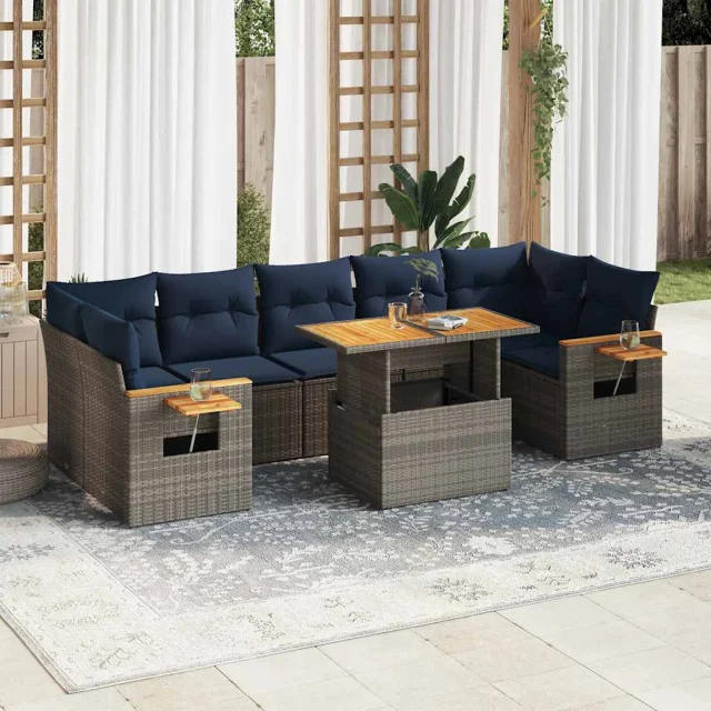 Ta vrtna sedežna garnitura je popoln dodatek za vaše dvorišče, teraso ali verando, saj zagotavlja udoben in vabljiv prostor za klepet z družino in prijatelji ali preprosto za sprostitev in uživanje na prostem.