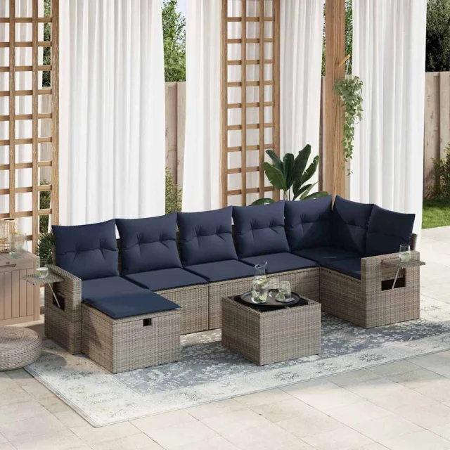 vidaXL Vrtna sedežna garnitura 8-delna z blazinami siv poli ratan