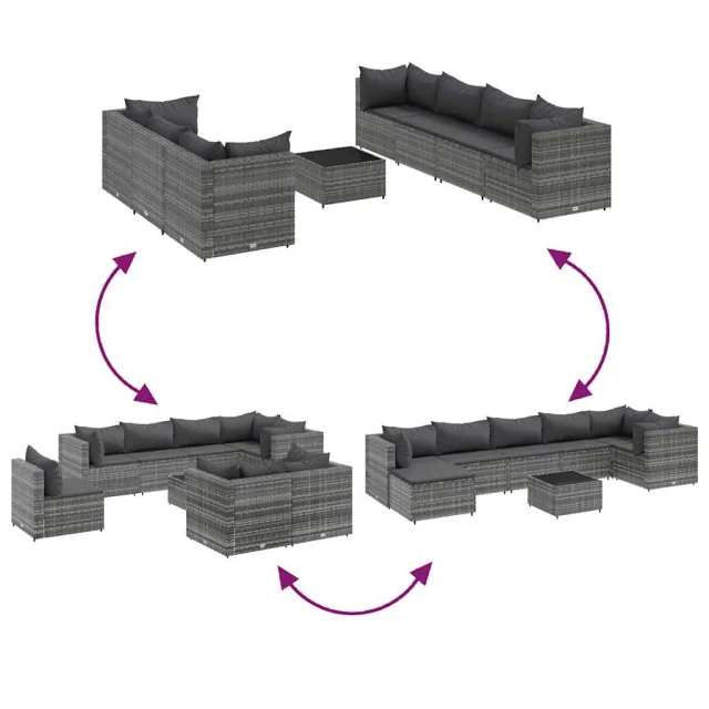 • Modularna zasnova: Ta komplet zunanjega pohištva ima modularno zasnovo, zaradi česar je popolnoma prilagodljiv in enostaven za premikanje, tako da lahko zunanjo garnituro postavite kakor koli želite.
