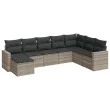 vidaXL Vrtna sedežna garnitura 8-delna z blazinami sv. siv poli ratan