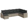 vidaXL Vrtna sedežna garnitura 8-delna z blazinami sv. siv poli ratan
