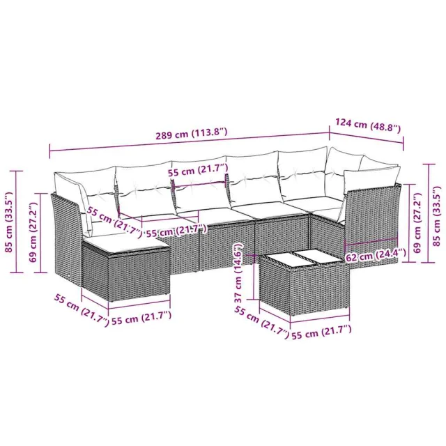 vidaXL Vrtna sedežna garnitura 8-delna z blazinami sv. siv poli ratan