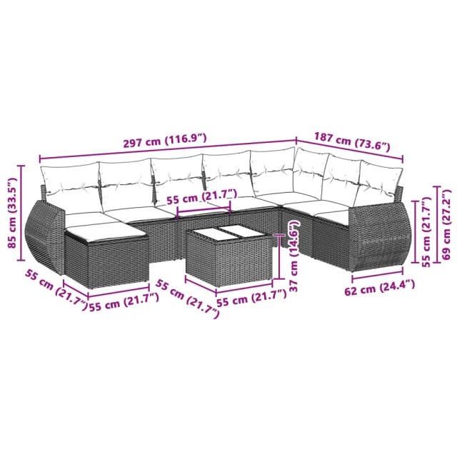 vidaXL Vrtna sedežna garnitura 8-delna z blazinami sv. siv poli ratan
