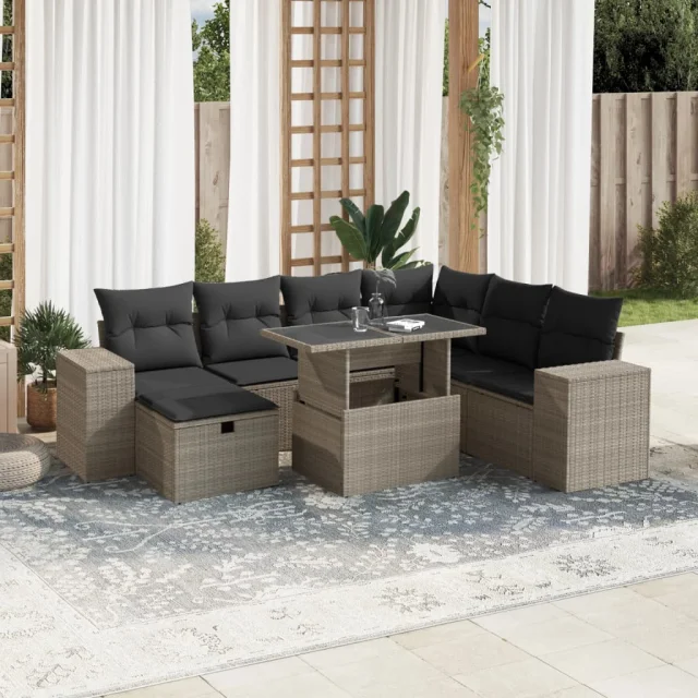 vidaXL Vrtna sedežna garnitura 8-delna z blazinami sv. siv poli ratan