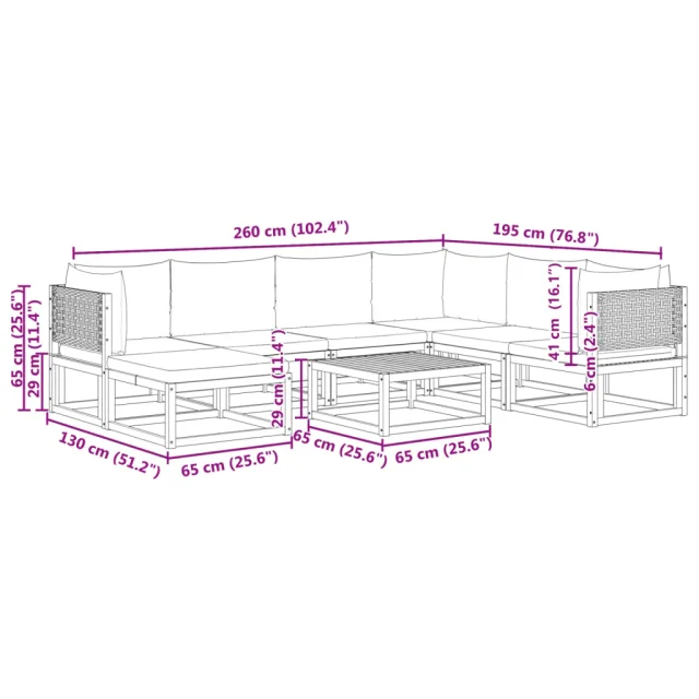 Ta vrtna sedežna garnitura je popoln dodatek za vaše dvorišče, teraso ali verando, saj zagotavlja udoben in vabljiv prostor za klepet z družino in prijatelji ali preprosto za sprostitev in uživanje na prostem.