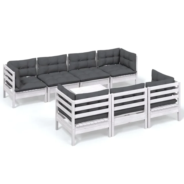 vidaXL Vrtna sedežna garnitura 8-delna z blazinami trdna borovina