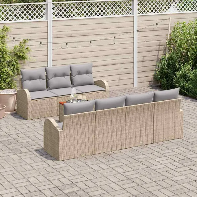 vidaXL Vrtna sedežna garnitura 8 pcs Bež in svetlo siva poli ratan