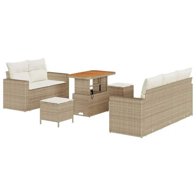vidaXL Vrtna sedežna garnitura 8 pcs Bež poli ratan