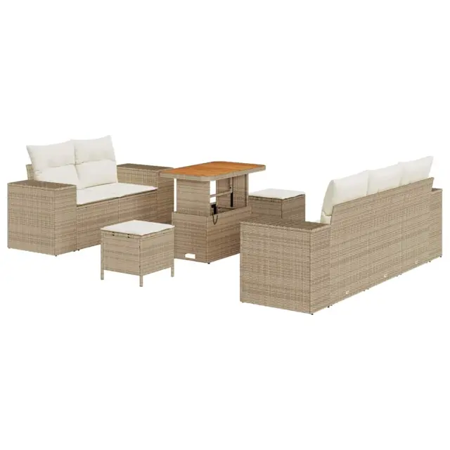 vidaXL Vrtna sedežna garnitura 8 pcs Bež poli ratan