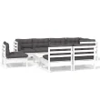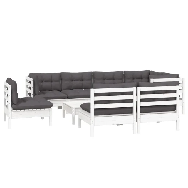 vidaXL Vrtna sedežna garnitura 9-delna z blazinami bela borovina