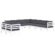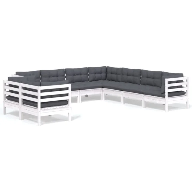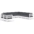 vidaXL Vrtna sedežna garnitura 9-delna z blazinami bela trdna borovina