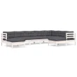 vidaXL Vrtna sedežna garnitura 9-delna z blazinami bela trdna borovina