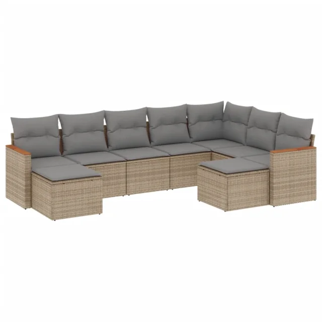 vidaXL Vrtna sedežna garnitura 9-delna z blazinami bež poli ratan