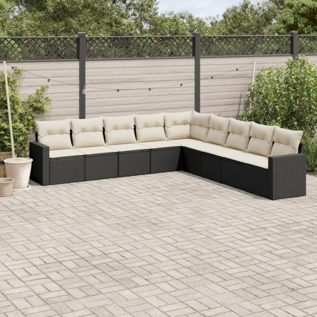 vidaXL Vrtna sedežna garnitura 9-delna z blazinami črn poli ratan
