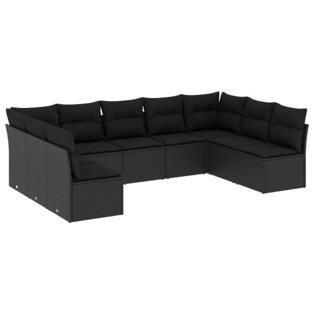 vidaXL Vrtna sedežna garnitura 9-delna z blazinami črn poli ratan