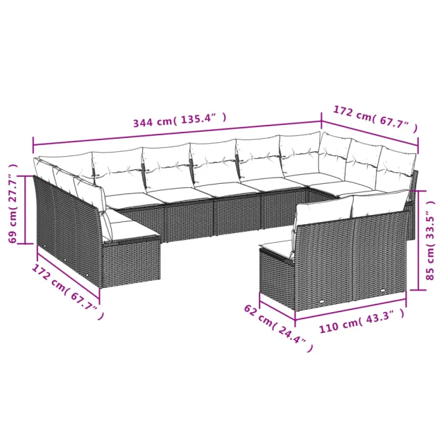 vidaXL Vrtna sedežna garnitura 9-delna z blazinami črn poli ratan