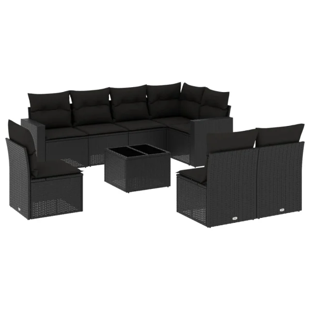 vidaXL Vrtna sedežna garnitura 9-delna z blazinami črn poli ratan