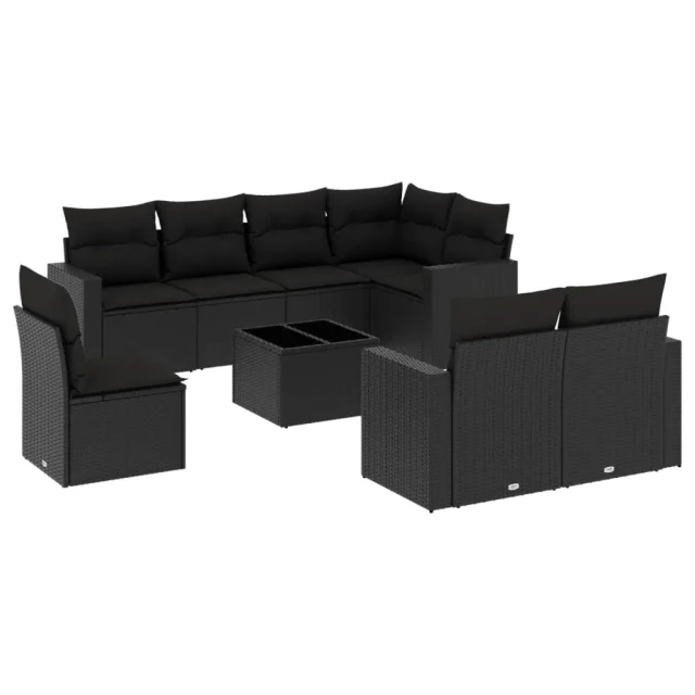 vidaXL Vrtna sedežna garnitura 9-delna z blazinami črn poli ratan
