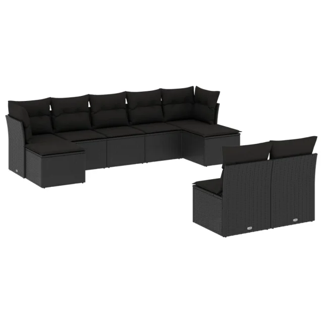 vidaXL Vrtna sedežna garnitura 9-delna z blazinami črn poli ratan