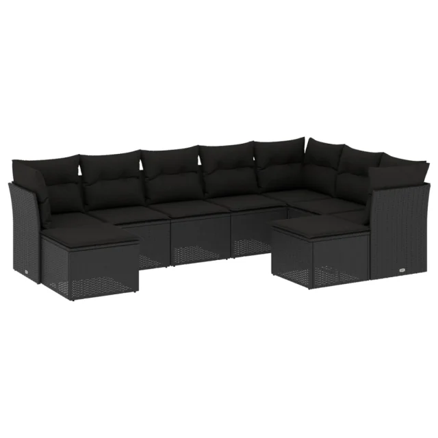 vidaXL Vrtna sedežna garnitura 9-delna z blazinami črn poli ratan