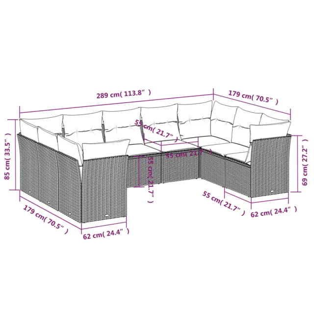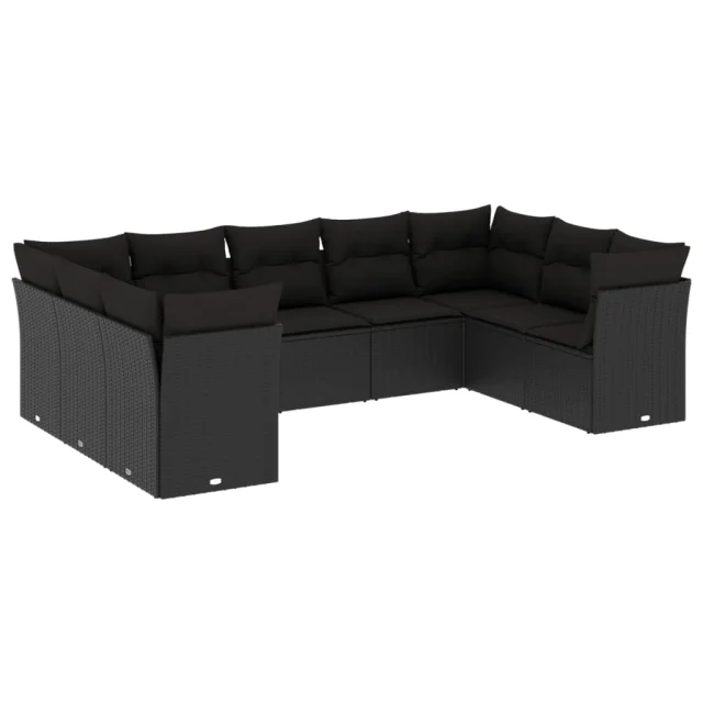 vidaXL Vrtna sedežna garnitura 9-delna z blazinami črn poli ratan