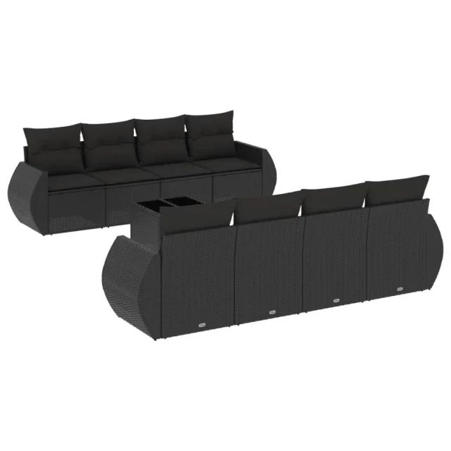 vidaXL Vrtna sedežna garnitura 9-delna z blazinami črn poli ratan