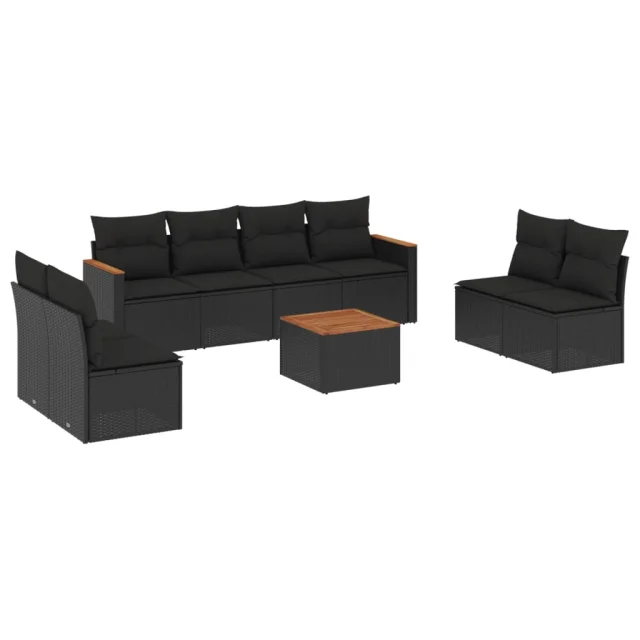 vidaXL Vrtna sedežna garnitura 9-delna z blazinami črn poli ratan