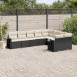 vidaXL Vrtna sedežna garnitura 9-delna z blazinami črn poli ratan
