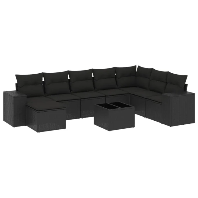 vidaXL Vrtna sedežna garnitura 9-delna z blazinami črn poli ratan
