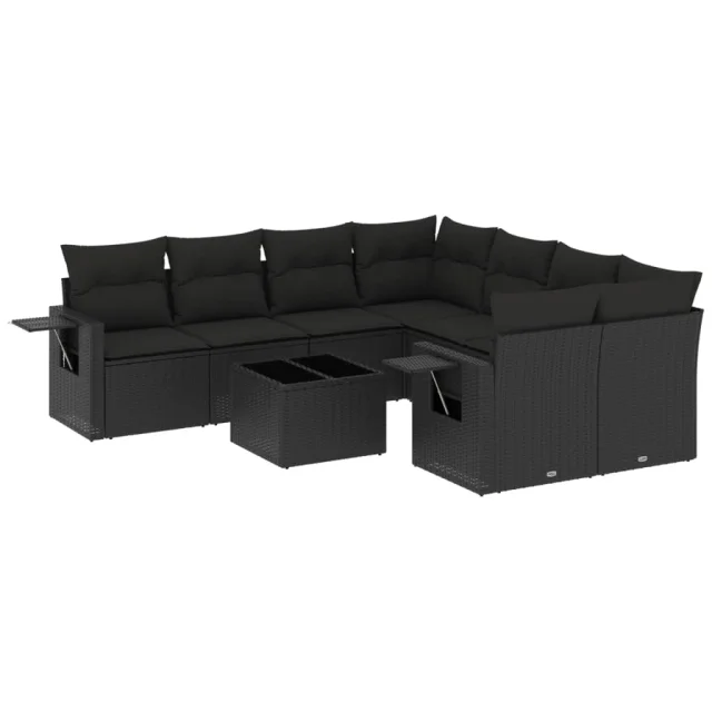 vidaXL Vrtna sedežna garnitura 9-delna z blazinami črn poli ratan
