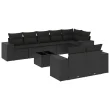 vidaXL Vrtna sedežna garnitura 9-delna z blazinami črn poli ratan