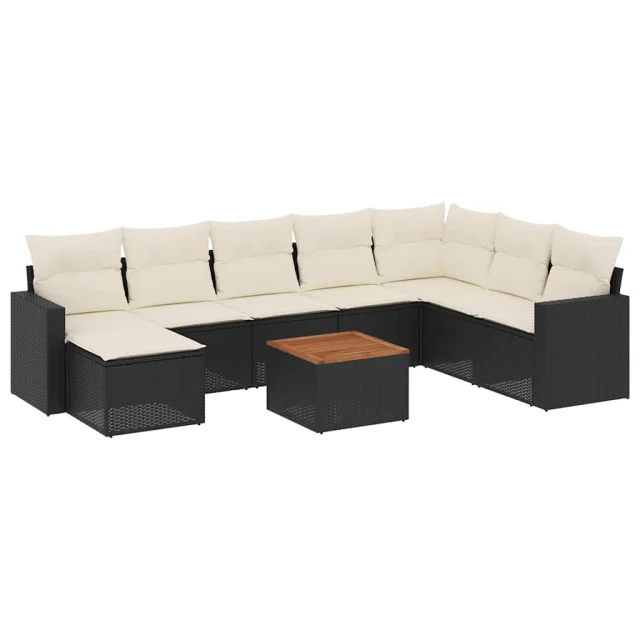 vidaXL Vrtna sedežna garnitura 9-delna z blazinami črn poli ratan