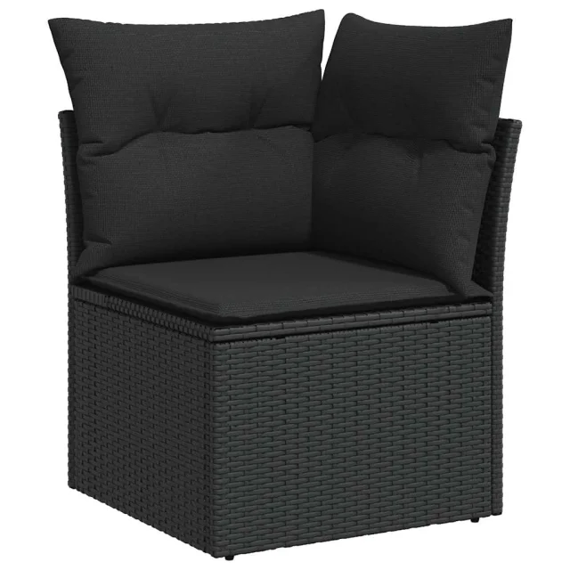 vidaXL Vrtna sedežna garnitura 9-delna z blazinami črn poli ratan
