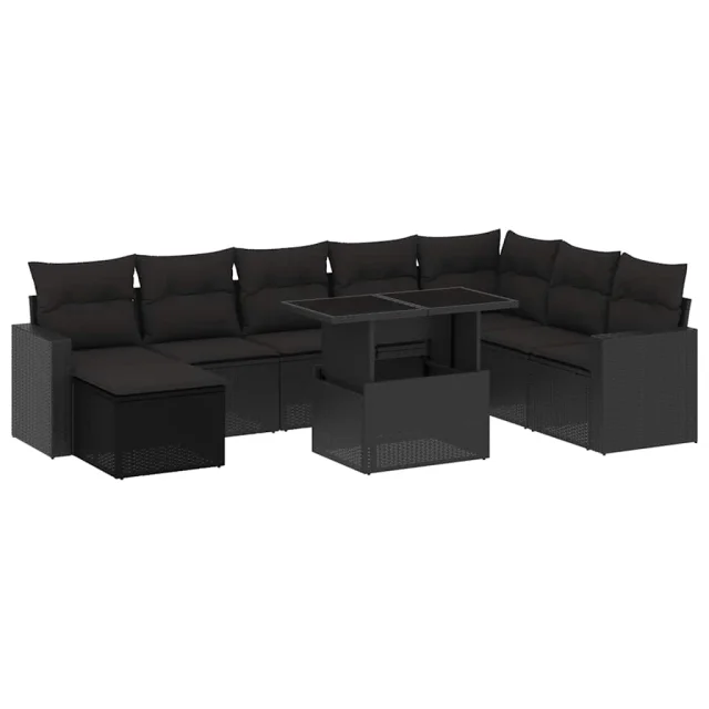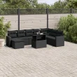vidaXL Vrtna sedežna garnitura 9-delna z blazinami črn poli ratan