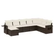 vidaXL Vrtna sedežna garnitura 9-delna z blazinami rjava poli ratan